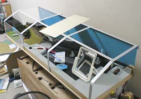 埃対策の出来てなかった唯一のボードにカバーを作り始めました。 収納時に展示台もかねるこのボードには、透明アクリル板を使ったカバーを作ります。 総工費が1万円もかかってしまうカバー…。 でも、テスト製作の段階では、それだけの価値がありそうです。